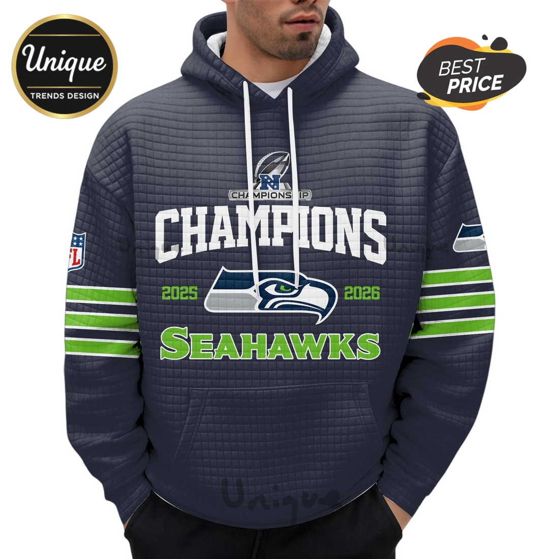 Get ready to claim victory! This Seattle Seahawks Champions Waffle Hoodie is for every true fan ready to rock the future 2025-2026 NFL season.