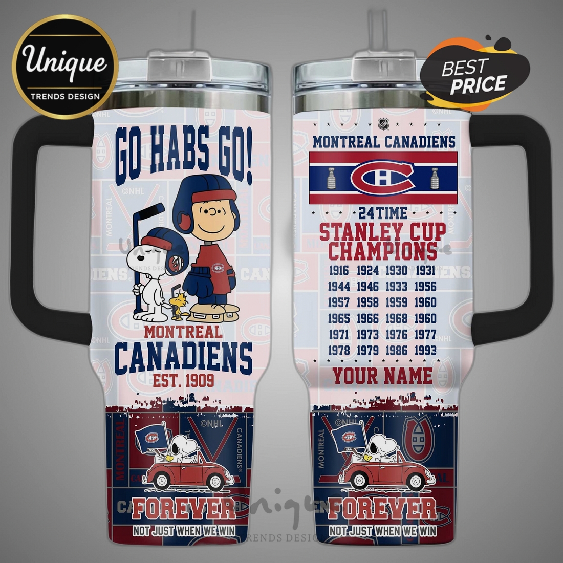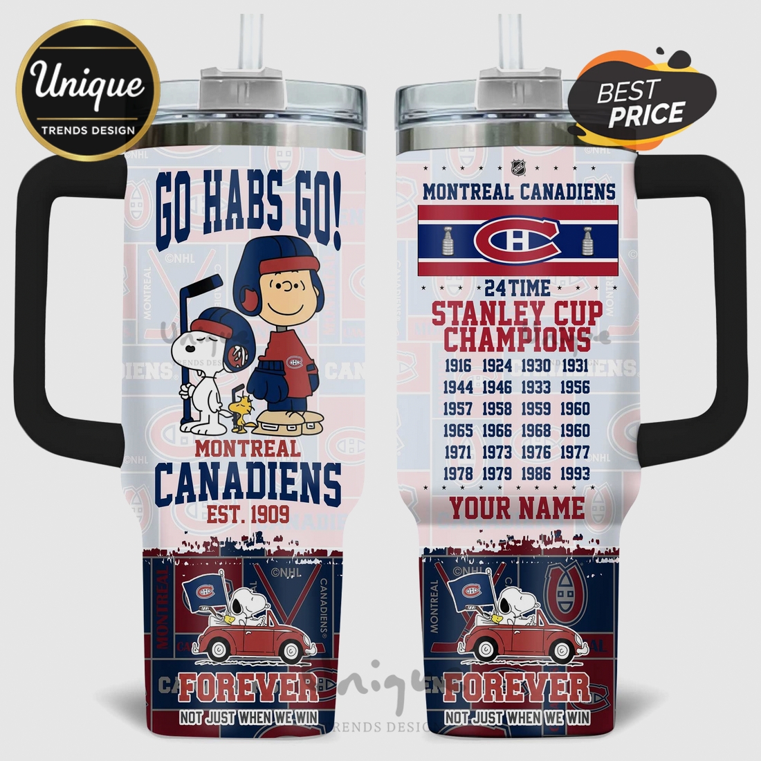 Epic Fanatic GearSnoopy Montreal Canadiens 24-Time Stanley Cup Champions 40oz Tumbler