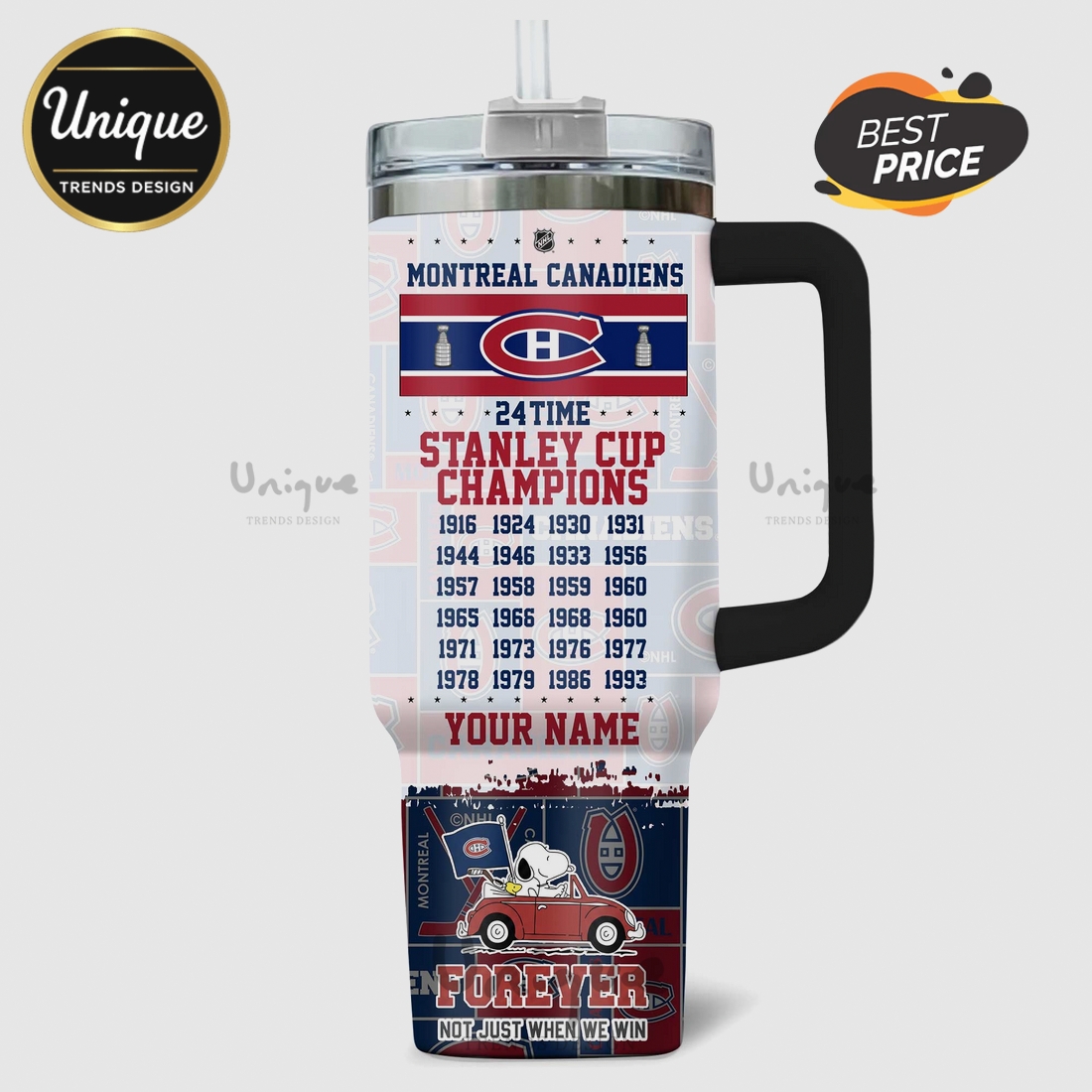 This Snoopy Montreal Canadiens tumbler perfectly meets the multifaceted needs of a diverse customer base. For the ardent Canadiens fan, it’s more than merchandise; it’s a functional, everyday item that proudly displays their loyalty and celebrates their team’s historic 24 Stanley Cup victories, serving as a constant reminder of their unparalleled success. For the admirer of Snoopy and the Peanuts gang, it offers a charming, unique collectible that blends their love for classic cartoons with the excitement of professional sports. For individuals prioritizing hydration and convenience, the massive 40oz capacity paired with exceptional insulation means they can carry enough liquid to last for extended periods, reducing the environmental impact of single-use plastic bottles and cups. Its rugged construction ensures it can withstand daily use and abuse, making it a reliable companion for active lifestyles, busy work schedules, or relaxing at home. The blend of iconic character, celebrated team, and championship legacy makes it an ideal gift for birthdays, holidays, or special occasions, guaranteed to delight any recipient who appreciates quality, utility, and a touch of unique charm. This tumbler stands out as a practical, durable, and highly expressive product, serving as a daily testament to team pride, cartoon nostalgia, and a commitment to staying hydrated in style.