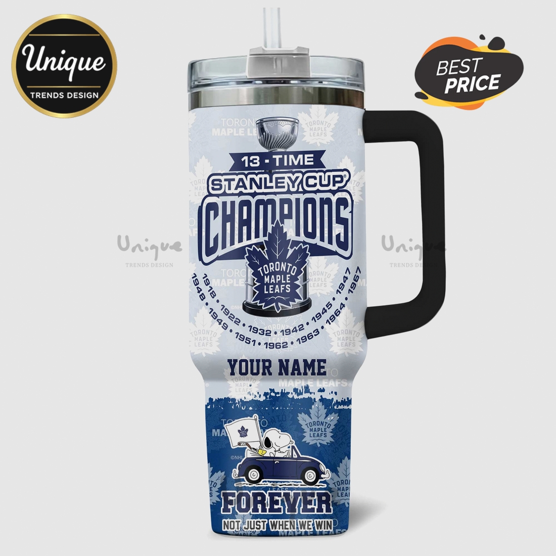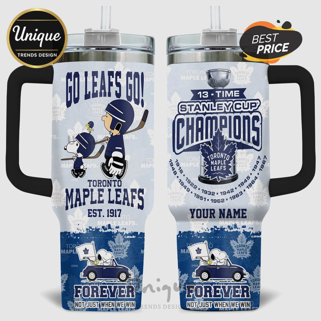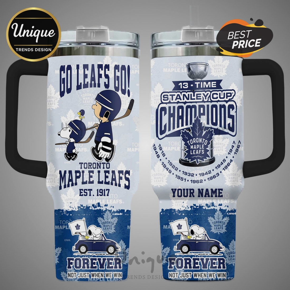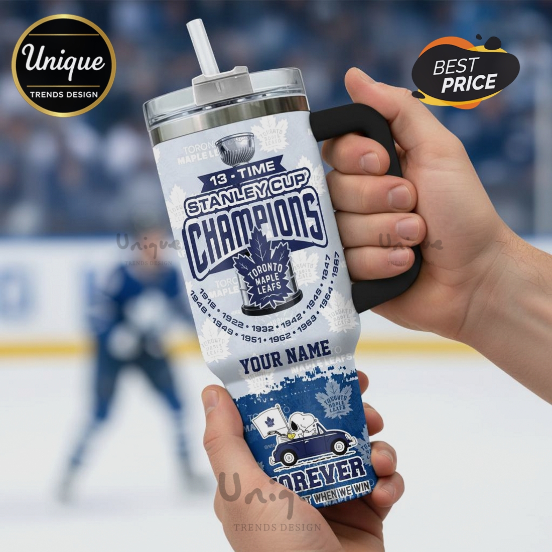 Get ready for game day with this awesome Snoopy Toronto Maple Leafs tumbler! Perfect for any devoted fan showing their 13-time Stanley Cup pride, from the arena to your watch party.