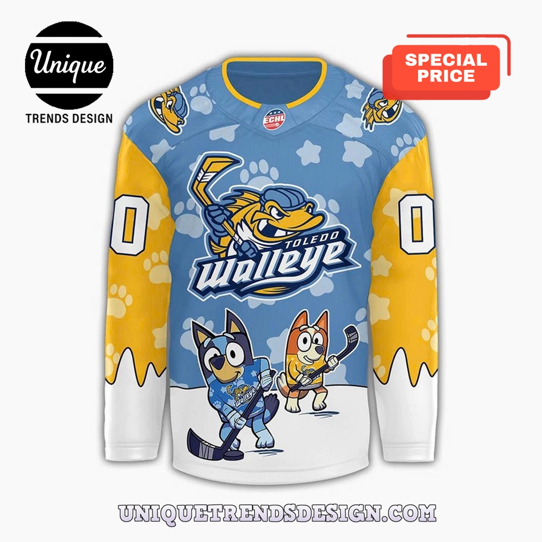 The Toledo Walleye x Bluey Day 2025 Hockey Jersey brings together performance, comfort, and standout style. Designed for players and fans alike, it’s perfect for the ice, the stands, or the streets – making it a must-have piece in your collection.