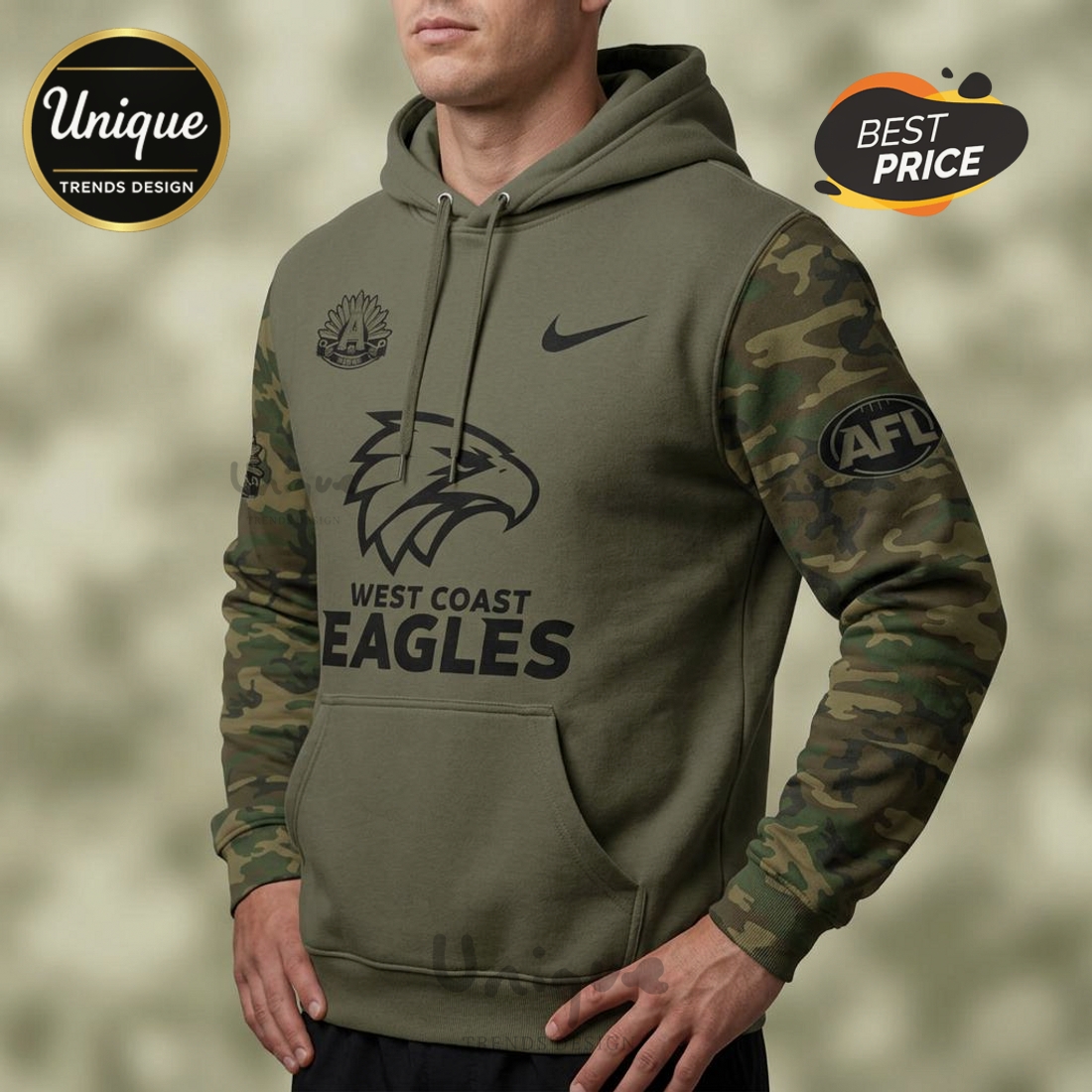 Tired of basic fan wear? It’s time to ditch the ordinary. Upgrade your collection with the West Coast Eagles ANZAC 2026 Limited Camo Hoodie. Demand top-tier quality.